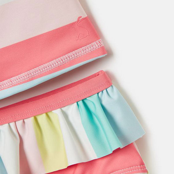 Whether you’re packing your little one’s bag for the beach or holiday, this tankini set should be included! It contains 79% recycled polyester and has a UPF (Ultravoilet Protection Factor) of 40+ so will keep them safe while they’re splashing around in the sun. The set comes with a tankini top featuring crossback straps with frilled details and a matching pair of bottoms with a frilled waistband.