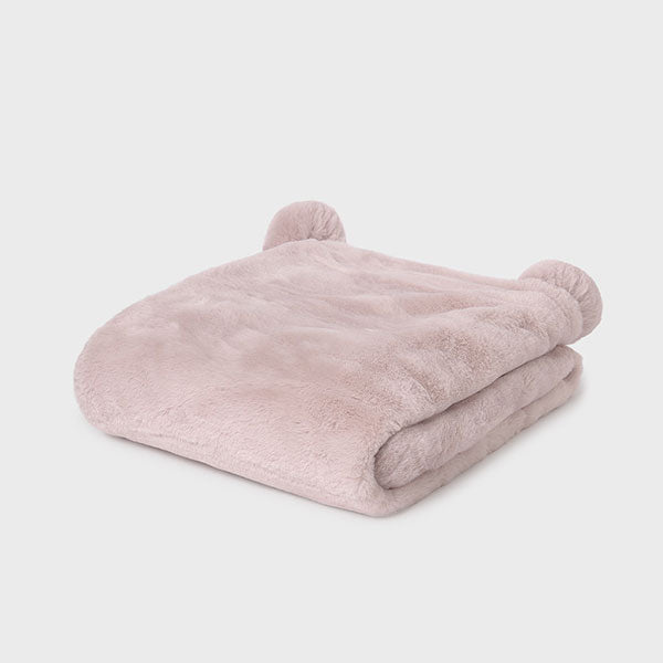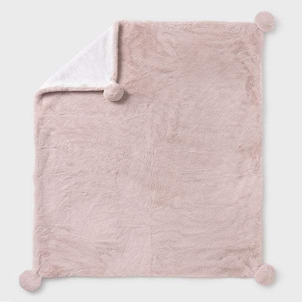 Mayoral Baby Beige Teddy Plush Blanket with Pompoms