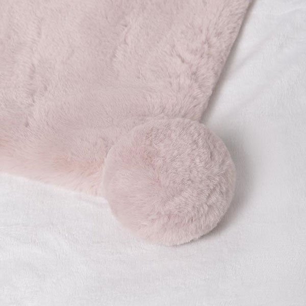 This wonderfully soft baby blanket is designed to keep your little one warm and protected during nap time. Made from a plush, velvety fabric, it feels luxurious against your baby's skin. Adorned with charming pom-poms, this blanket adds a playful touch to any nursery. Measuring 39 inches long by 31 inches wide, it's the perfect size for cuddling up or snuggling in a stroller. This cozy blanket is an essential accessory for your baby's comfort.