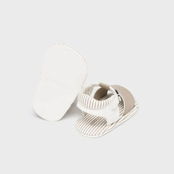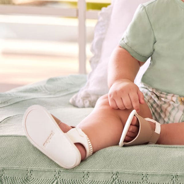Summer sandals for newborn with which you will dress their feet on hot days. Adjustable Velcro strap which guarantees a perfect fit. Decorative buckle. All of our shoes are made with chemical free ornaments.