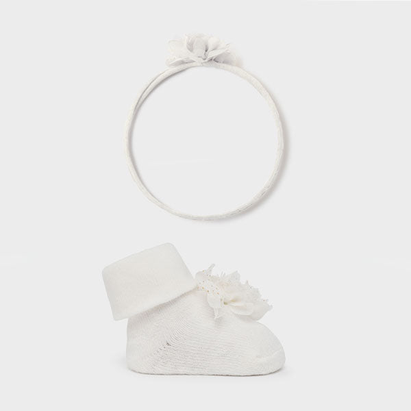 Mayoral Baby Girl Ivory Headband and Socks Set