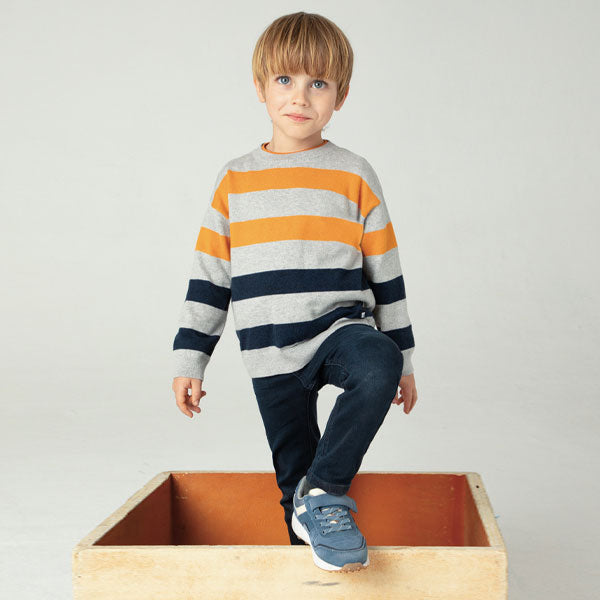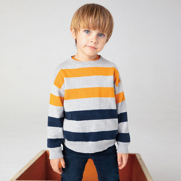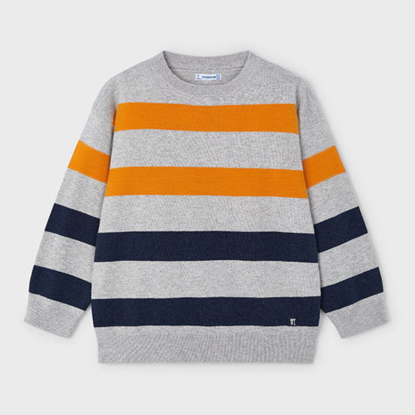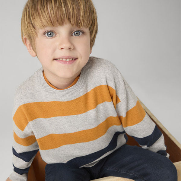 Mayoral Boy Striped Sweater Top: Gray, Mustard & Navy