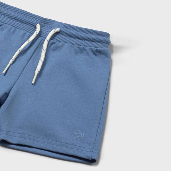Mayoral Fleece Shorts! Made with a comfortable and lightweight unbrushed fleece fabric, these baby boy shorts feature an elastic waistband with a drawstring for a perfect fit. Available in a classic capri blue color, they're the perfect blend of style and comfort.