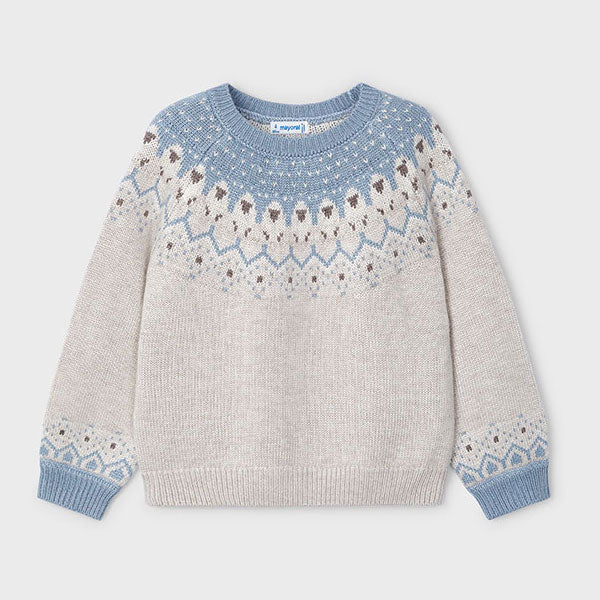 This stylish girls' sweater, made with recycled polyester, features puffed sleeves and a warm, elegant fabric perfect for special occasions. The ribbed hem, cuffs, and neckline provide a better fit, ensuring both comfort and sophistication.