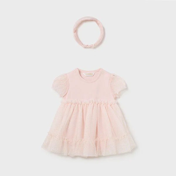 Mayoral Girls Pink Tulle Romper Overlay Skirt, Headband Set