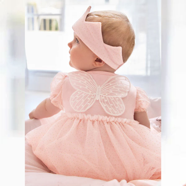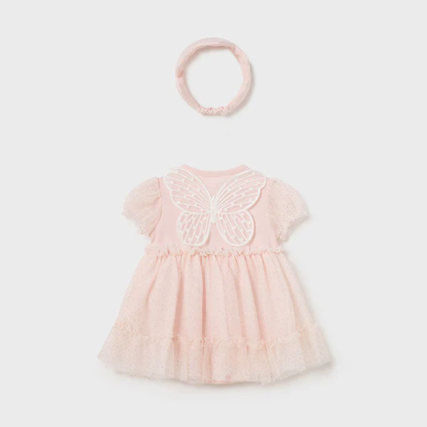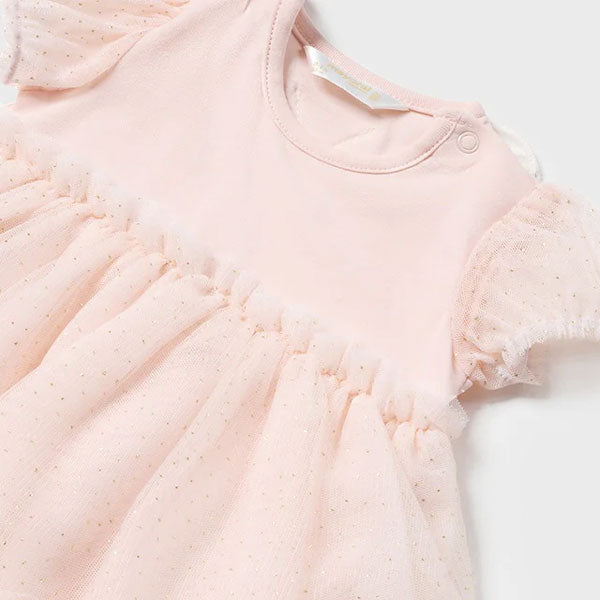 Mayoral Baby Girls Pink Tulle Romper with Shimmer Overlay Skirt, Crown Headband Set