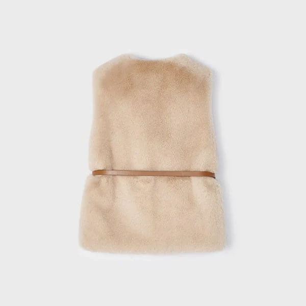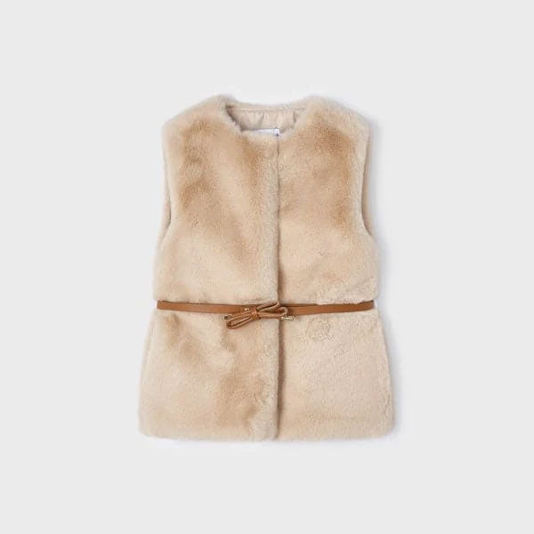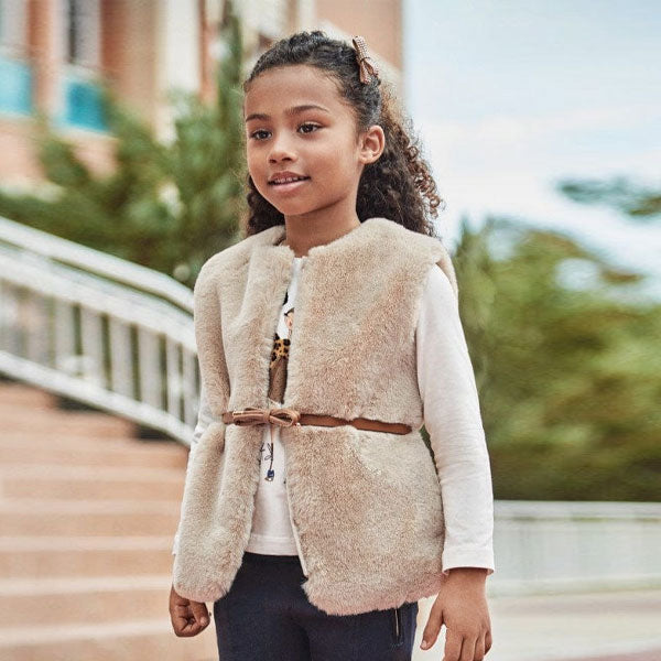 Mayoral Girls Cream Faux Fur Vest with Belt