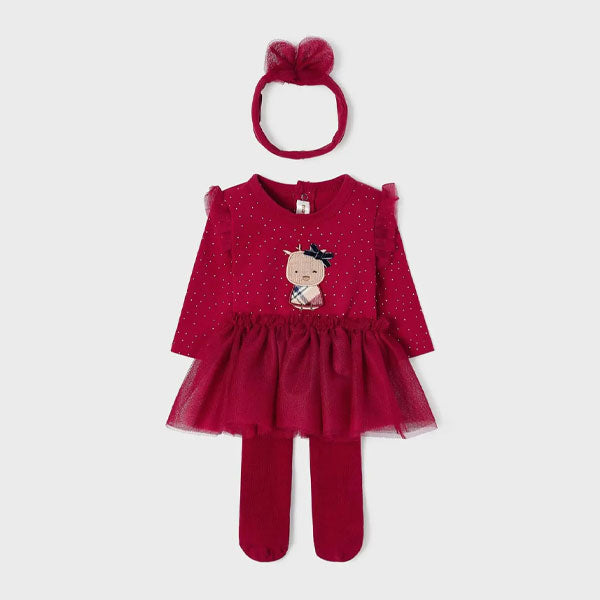 Long sleeve onesie with a deer on it, tulle skirt with attached tights & headband