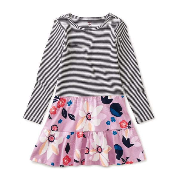 Girls Tea Collection Tiered Skirted Twirl Dress with Purple Floral Skirt